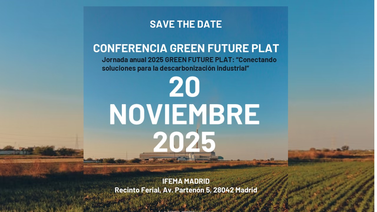 La Plataforma Tecnológica Española para la Descarbonización de Sectores Industriales (GREEN FUTURE PLAT) organiza el próximo 20 de noviembre a las 12:00h su jornada anual 2025 “Conectando soluciones para la descarbonización industrial”