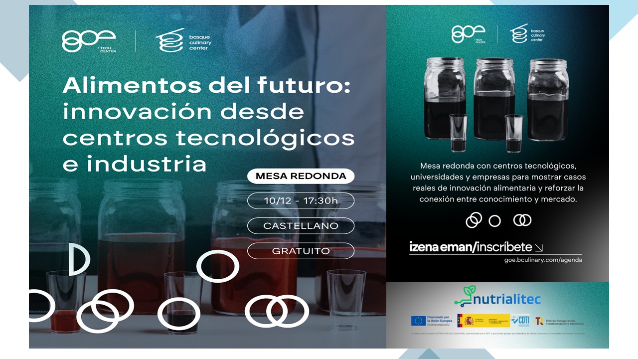 Mesa redonda sobre los alimentos del futuro: innovación desde centros tecnológicos e industria, organizada por el ecosistema NUTRIALITEC en el Gastronomy Open Ecosystem de San Sebastián.